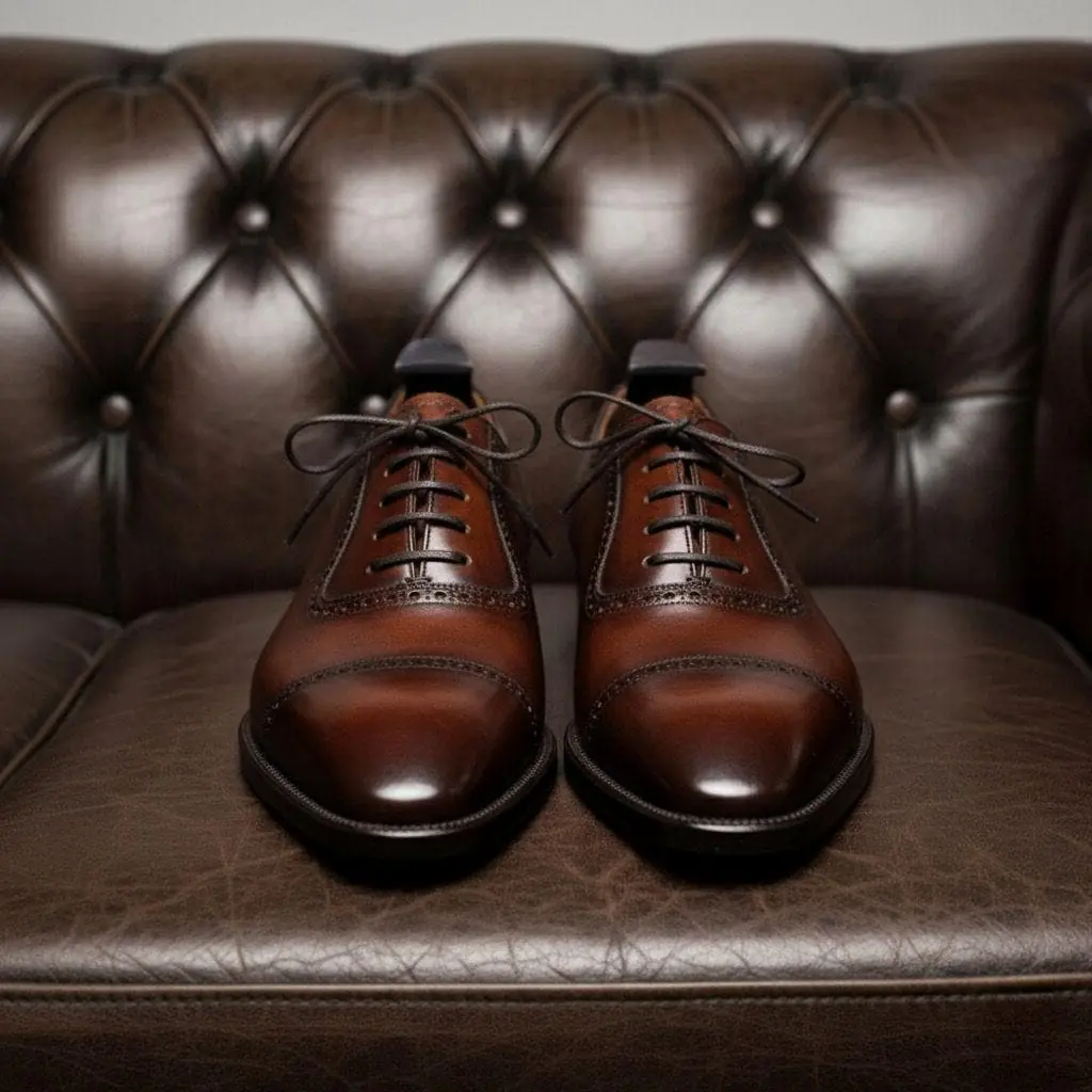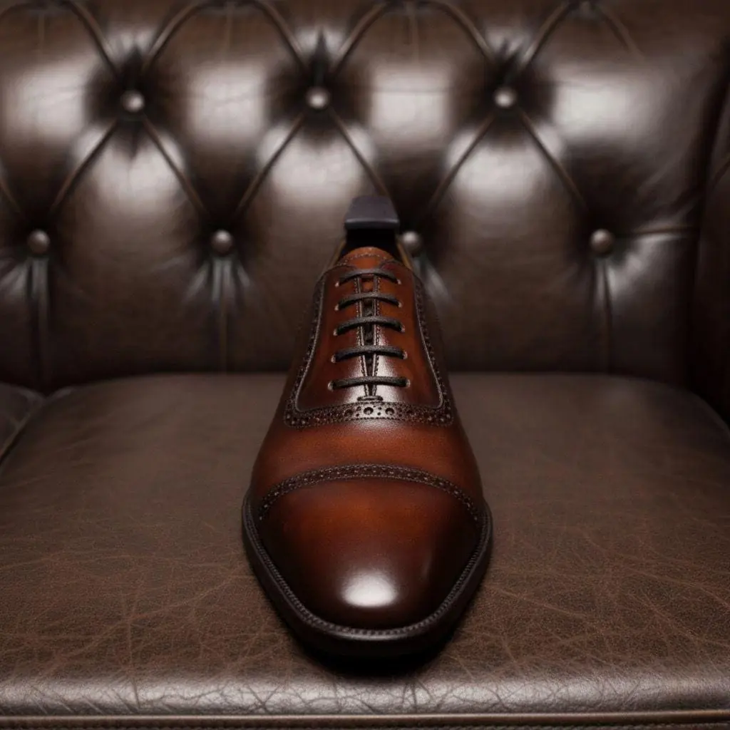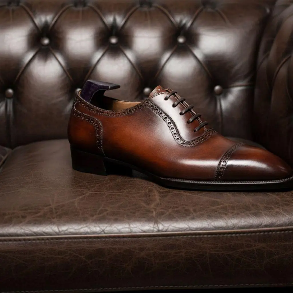 Brown Patina Handmade Captoe Oxford Shoes