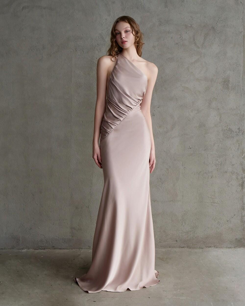 Our silk dress drapes in a flattering A-line cut, brushing the waist and flaring softly. Choose your favorite neckline (Round, V, Square, Boat) and sleeves (from sleeveless to long straight). Satin-lined pockets are discreetly hidden at the hips. Length falls mid-calf or ankle.