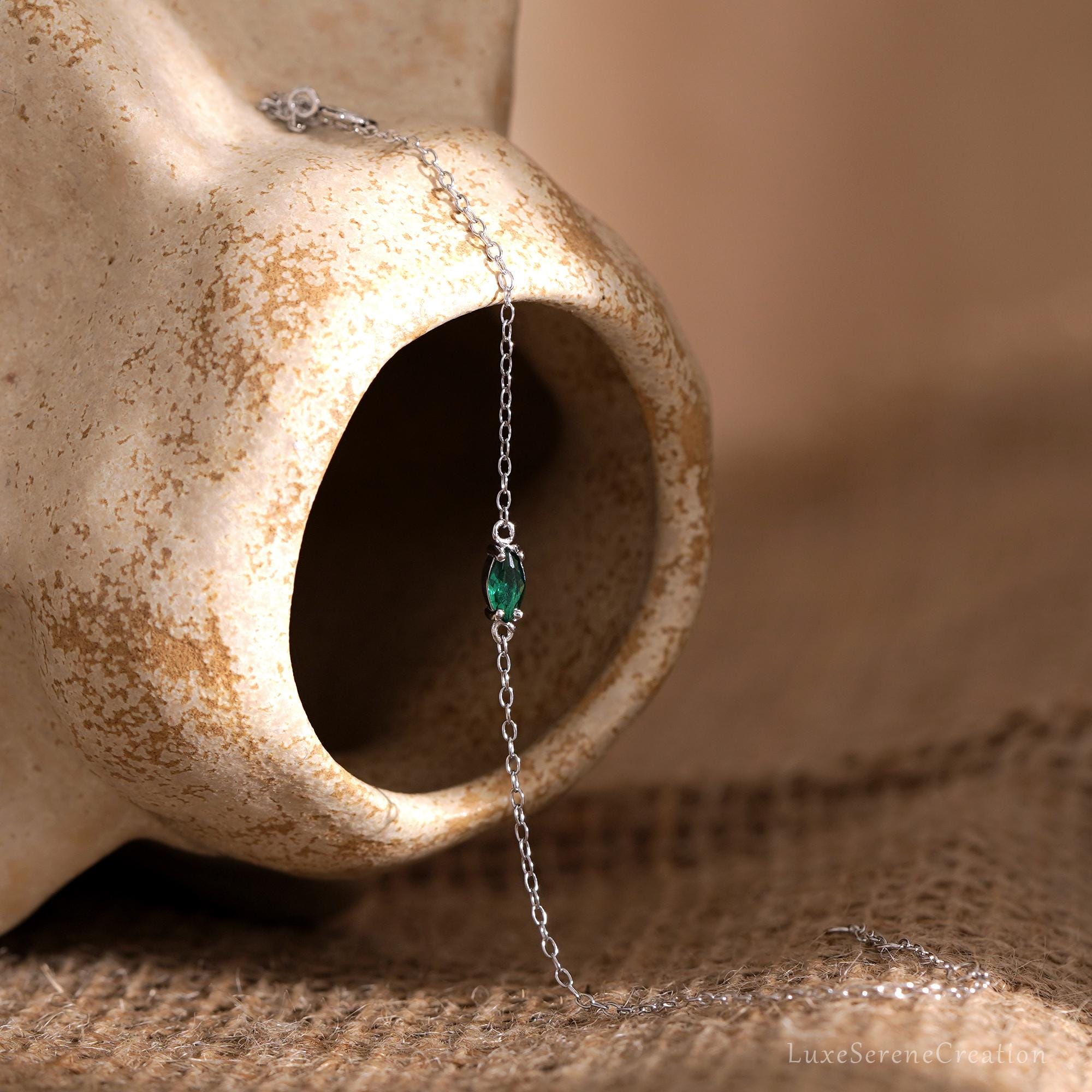 Be the first to review “Emerald Gemstone Bracelet Marquise Zircon Chain Sterling Silver”