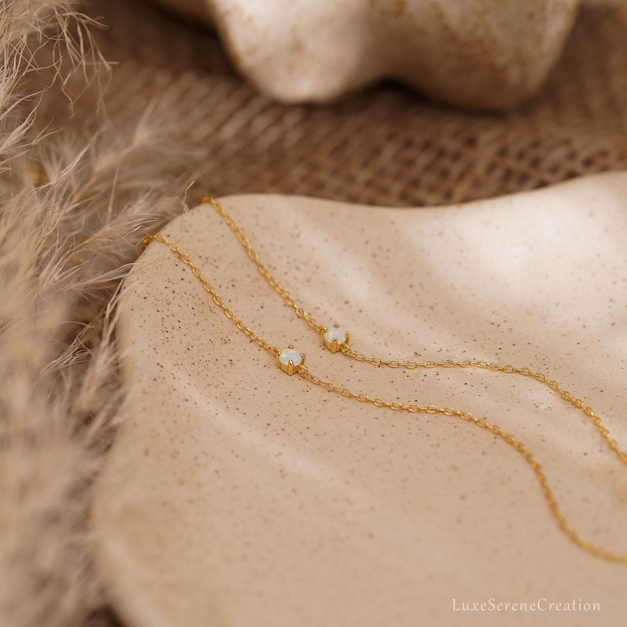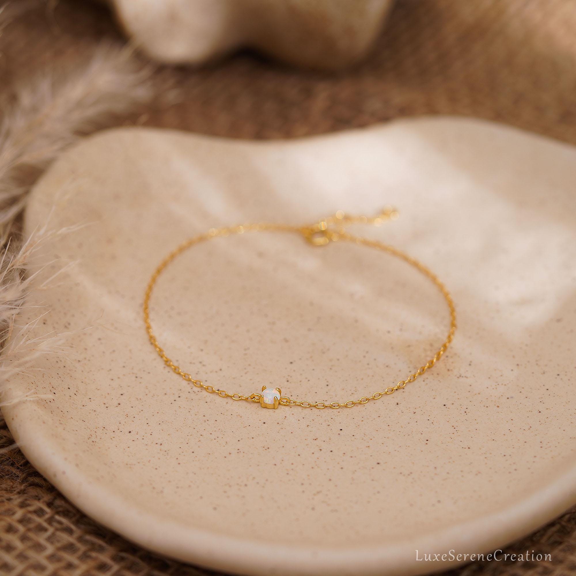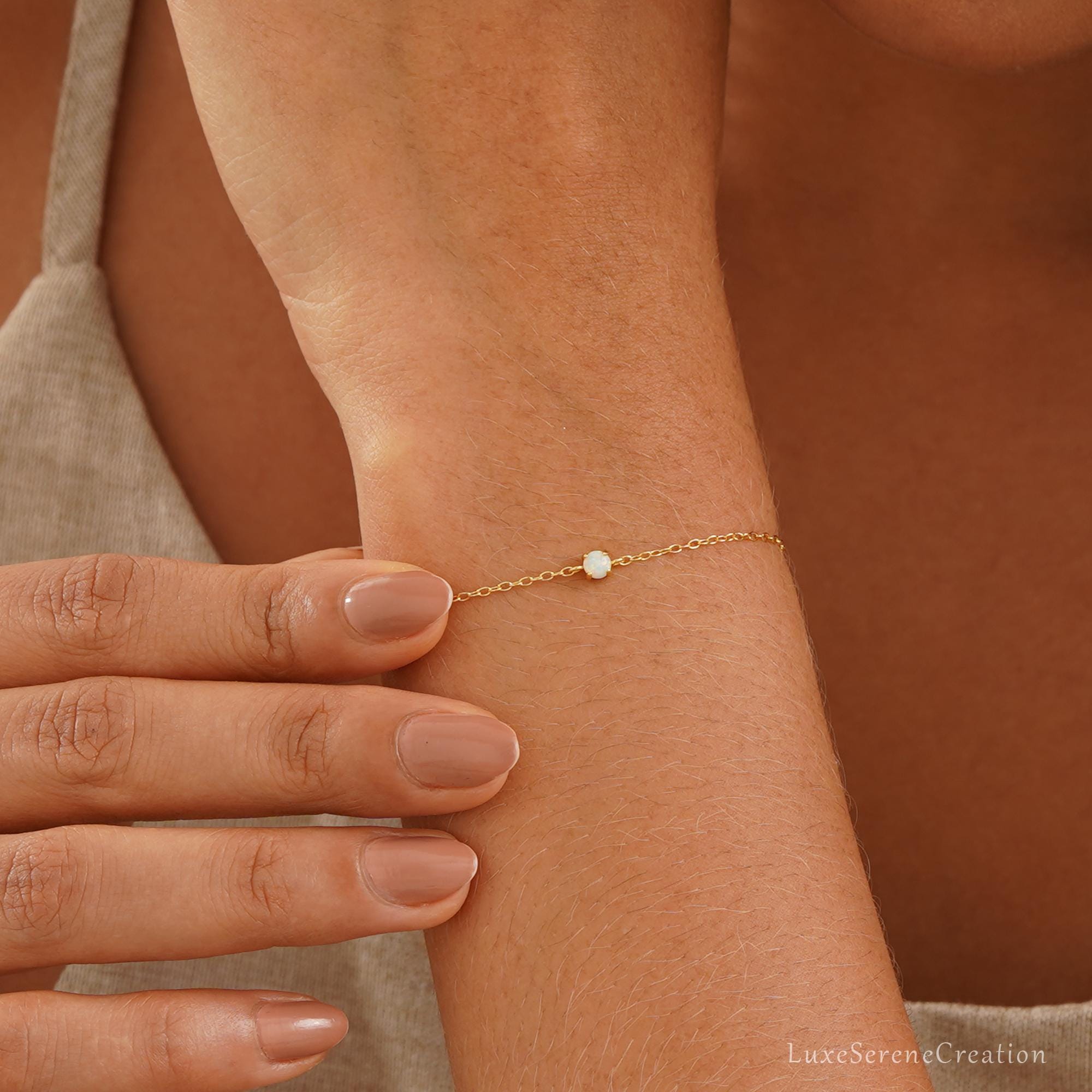 Single Opal Bracelet, Sterling Silver Opal Bead Bracelet, October Birthstone Bracelet, Minimalist Bracelet for Women, Christmas Gift for Her